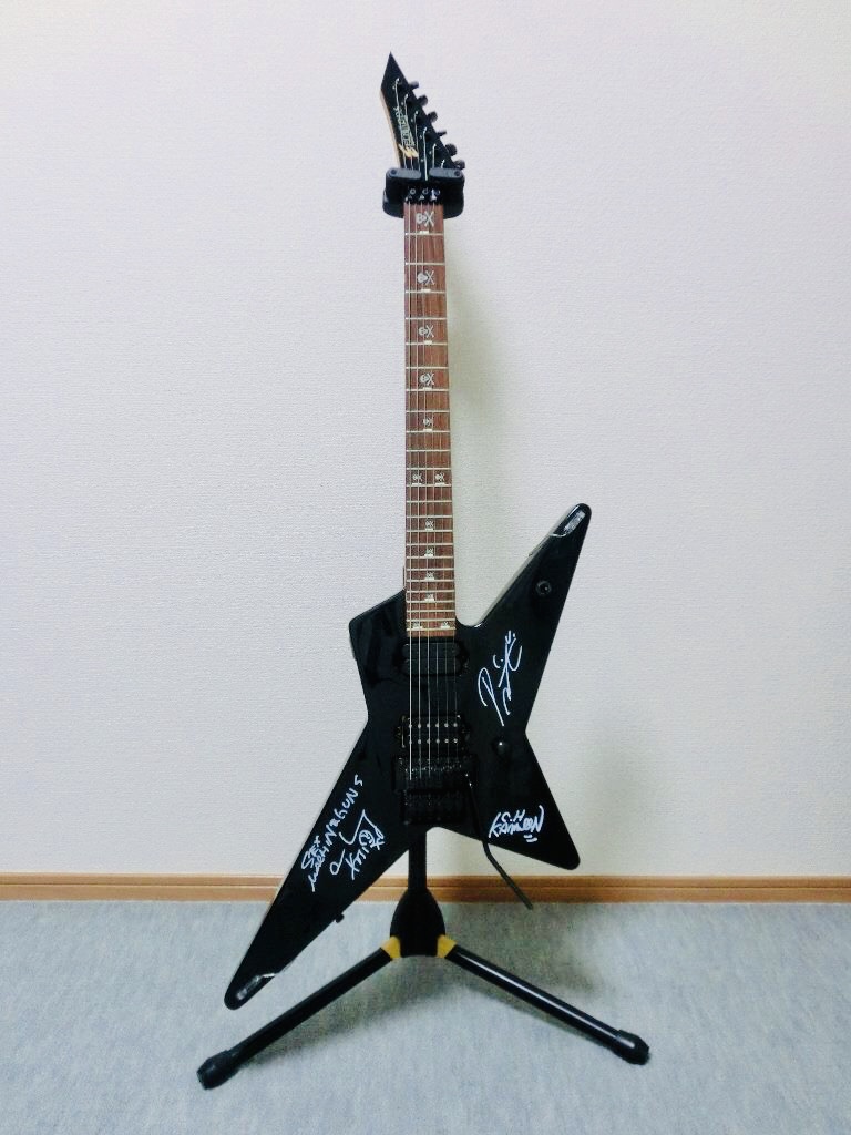 スタジオ練習の後にライブに行ったことがあって、ギターを手荷物で預けていたのですが、終演後に某氏がメンバーさんにサインをいただいてきてくれました。 勿体無くて使えなくなったので、ESPのAnchang starを買い足しました。